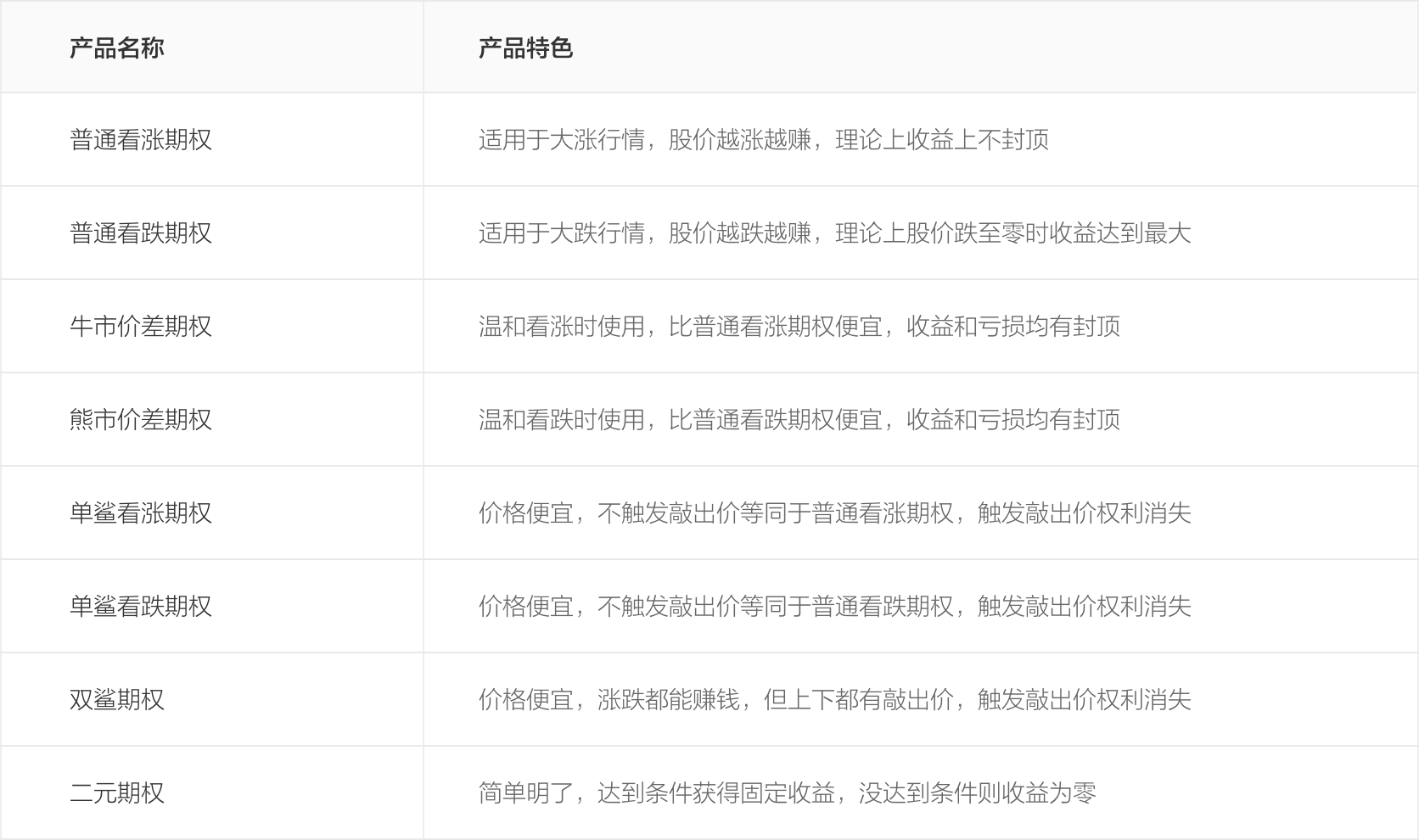 场外股票期权是对于场内股票期权的有效补充。目前国内的场内股票期权标的较少,行权价、到期日等也都有一定的限制;而场外股票期权标的更为丰富,行权价、到期日等合约条款的设计也十分灵活,能够满足您更为个性化的投资需求。